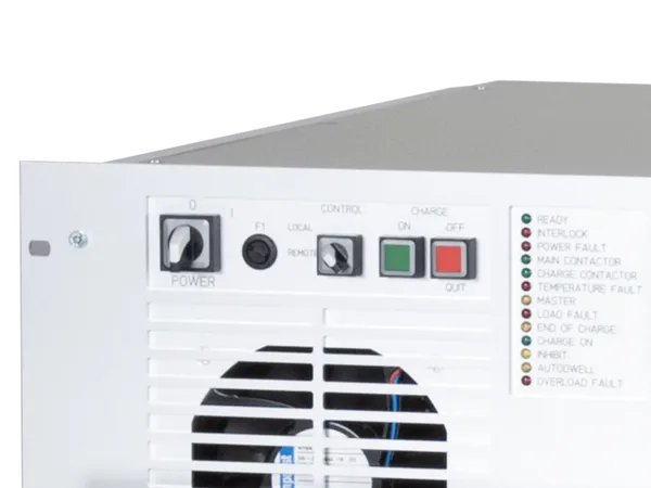 | Bedienung | galvanisch getrennte, parallele SUB-D-Schnittstelle, PROFINET oder CAN-Bus auf Anfrage, optional lokales Bedienpanel LCD-Display für Soll- und Istwerte Master/Slave-Schnittstelle zur Parallelschaltung mehrerer Geräte |
